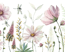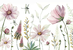 Papier peint fleurs et libellules