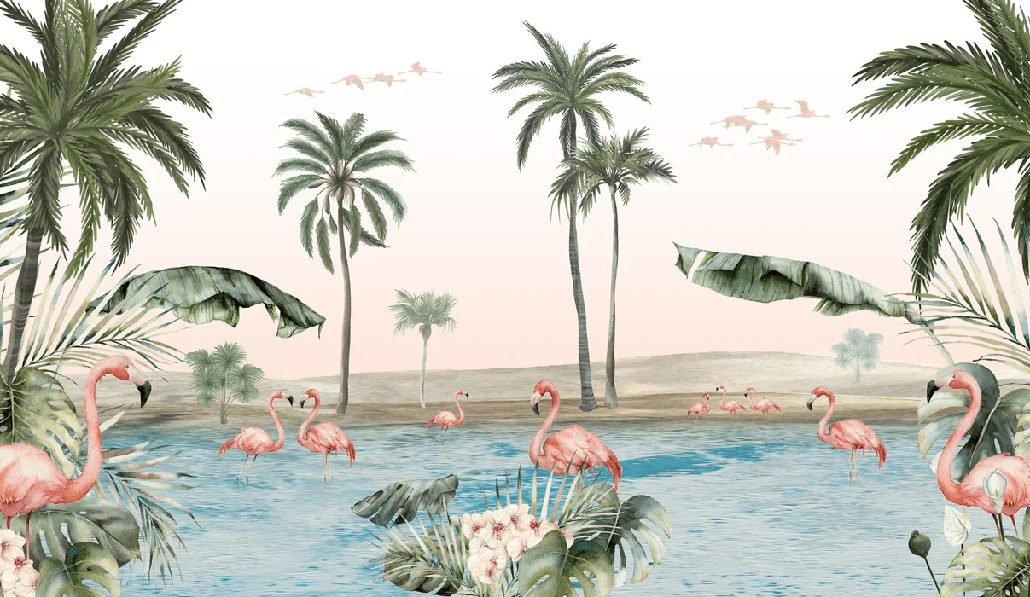 Papier peint oasis flamingo