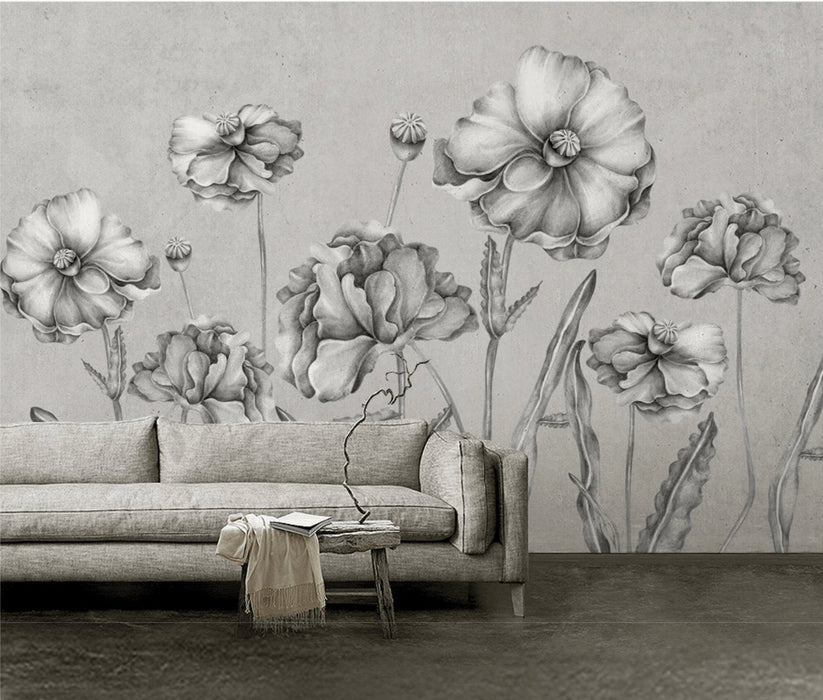 Diese Tapete bukolische Blumen schwarz und weiß verleiht Ihrem Zuhause einen romantischen Touch. Diese Vliestapete ist ideal für ein Schlafzimmer, ein Wohnzimmer oder ein Büro und wirkt raffiniert. Die romantische Seite wird durch das Blumenmuster betont. Mit unserer maßgefertigten Panorama-Tapete ganz einfach ein einzigartiges Interieur schaffen.
