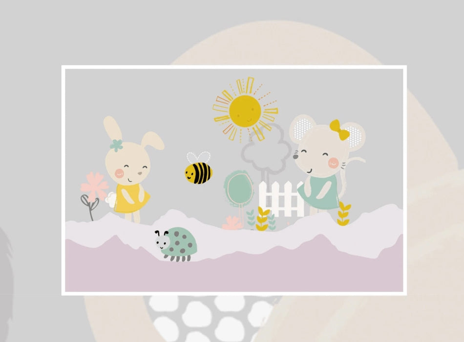 Holen Sie sich mit dieser Babytapete Maus Biene, die in sehr weichen und beruhigenden skandinavischen Tönen gehalten ist, Sanftheit und Zärtlichkeit in das Zimmer Ihres Kindes. Die zarten Aquarellmotive werden Ihr Kind begeistern. Geeignet für die Zimmer von Babys und etwas älteren Kindern. Erschaffen Sie ihm ganz einfach seine eigene Fantasiewelt in seiner Realität.