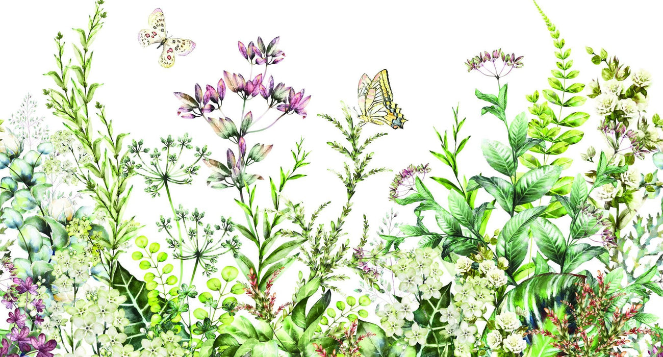 Teilen Sie einen süßen Moment und atmen Sie die frische Luft des Schmetterlingsfeldes mit unserer Panorama-Tapete Bewässerte Felder, die Sie in das Leben der Natur versetzt, umgeben von Pflanzen und wo der Nektar der Blumen sanft gesammelt wird.