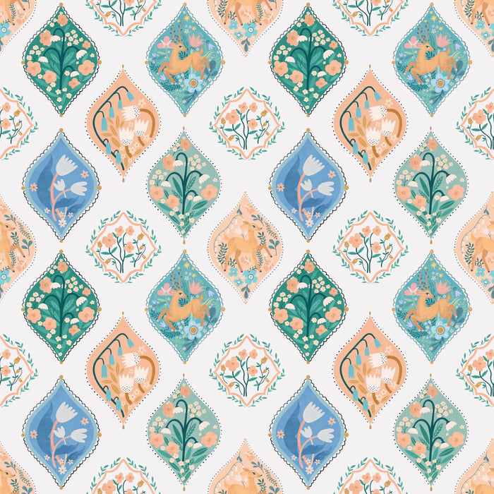 Entdecken Sie die Kindertapete Magische Arabeske! Eine Wandkomposition mit unglaublichen Arabesken: Blätter, Blumen, Tiere. Diese prächtige und originelle Wanddekoration wird das Zimmer Ihres Kindes perfekt mit Geschmack und Sanftheit schmücken. In einem Spielzimmer, einem Kinderzimmer oder auch einem Babyzimmer wirken die Motive dieser Kindertapete Arabeske zauberhaft und märchenhaft.