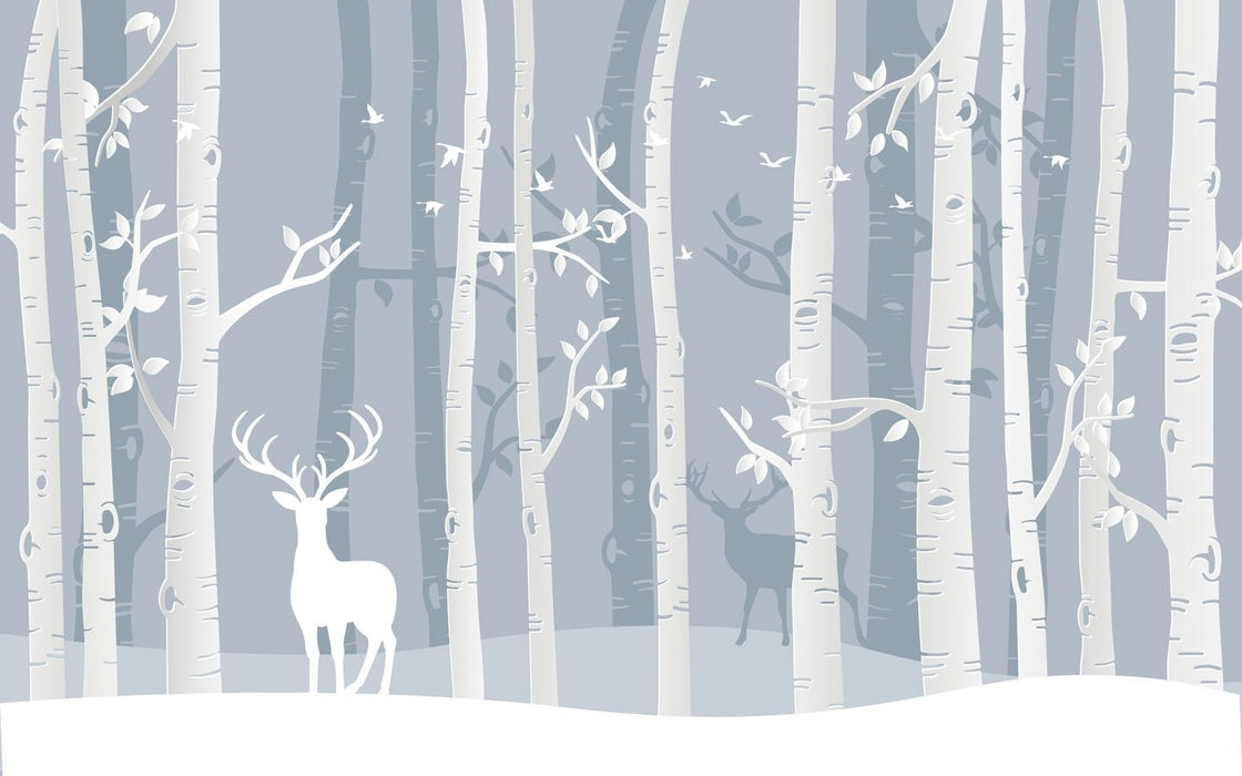 Kindertapete Skandinavischer Wald Birke und Hirsch