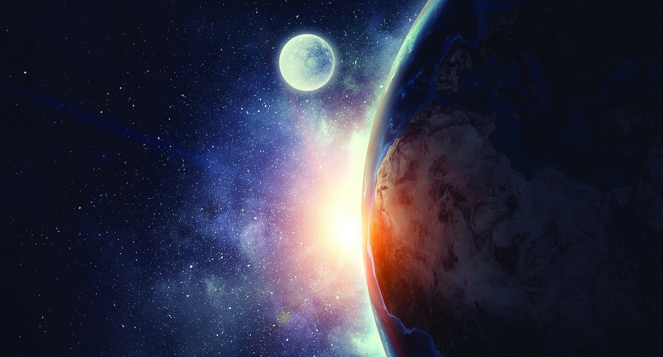 Reisen Sie mit unserer Mond-Panorama-Tapete in den Weltraum. Die Farben und Details dieser XXL-Wanddekoration werden Sie begeistern! Astronomie-Fans werden sich freuen, den blauen Planeten (Erde), den Mond und das galaktische Universum, das sie mit Sternen umgibt, wiederzufinden.