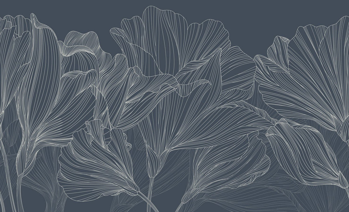 Panorama-Tapete Blumenwalzer blau