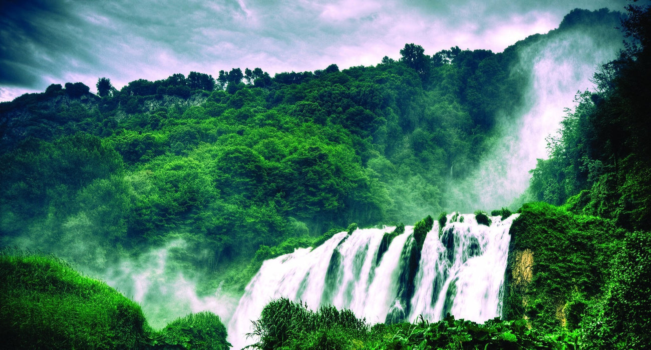 Möchten Sie dem Alltag entfliehen und die frische Luft einatmen? Unsere Panorama-Tapete Nebelwasserfall ist atemberaubend. Holen Sie sich mit dieser XXL-Wanddekoration im Trompe l'oeil-Format eine Traumlandschaft in Ihr Zuhause. Der Realismus wird Ihre Gäste beeindrucken. Erstellen Sie ganz einfach eine einzigartige Inneneinrichtung mit unseren maßgefertigten Tapeten.