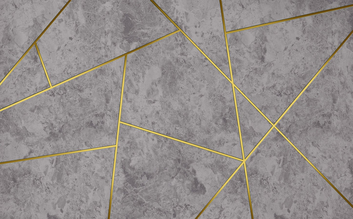 Diese Tapete hat einen strukturierten Trompe l'oeil-Effekt, der ein Grau mit Betonmarmor-Effekt und Linien mit Gold-Effekt aufweist. Diese Tapete enthält keine Goldfarbe, sondern ist eine Mischung aus gelben, orangen und braunen Farbtönen, die ihr diesen Effekt verleiht.
