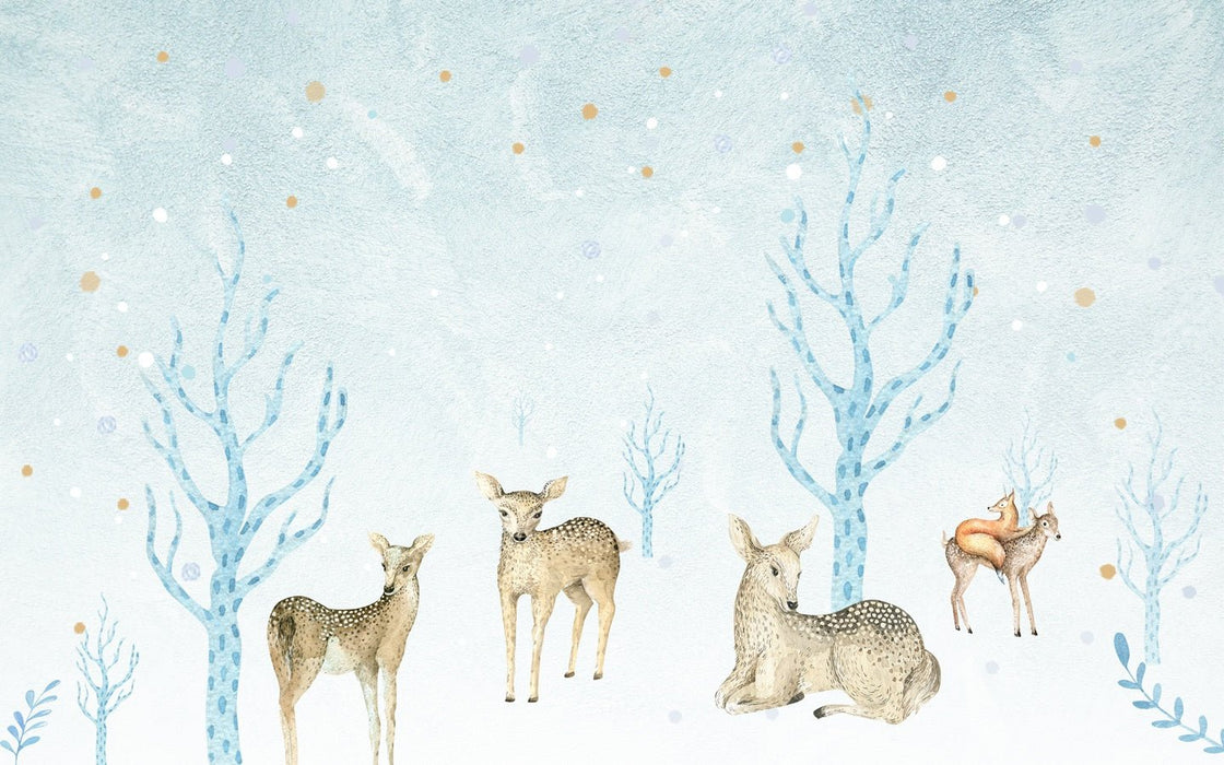 Entdecken Sie unsere Fototapeten Babyzimmer Waldblau und Rehe. Diese XXL-Tapete ist ideal für ein Kinder- oder Babyzimmer oder ein Spielzimmer. Eine Wanddekoration, die süße Geschichten erzählt und Zärtlichkeit in Ihren Raum bringt. Ein Wandbild, das Ihrem Raum eine persönliche Note verleiht und ihn gemütlich macht. Diese umweltfreundliche Tapete ist sehr gut für ein Babyzimmer geeignet. Eine gesunde Tapete für eine natürliche Umgebung.