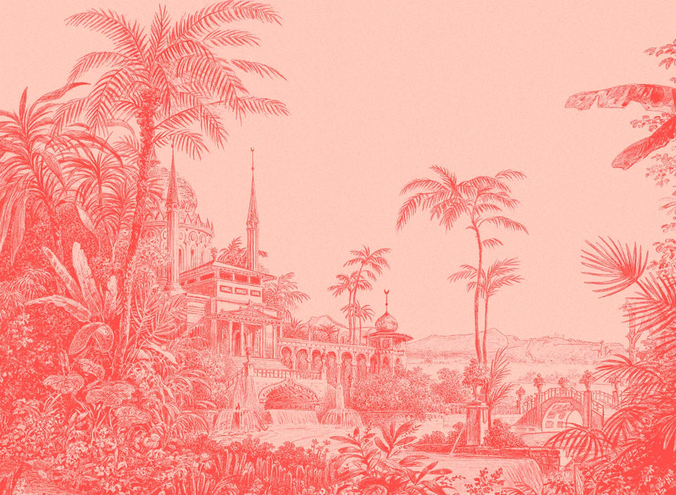 Veredeln Sie Ihr Zuhause mit unserer monochromen roten Tempel-Dschungel-Tapete. Dieses Wandgemälde wird in zwei Farben (beige oder rot) angeboten und schmückt Ihre Wände mit Geschmack und Zartheit. Diese Dschungeltapete bezaubert Sie und Ihre Besucher. Wir lieben dieses maßgefertigte Panorama für seine Details und die sanften Kurven.
