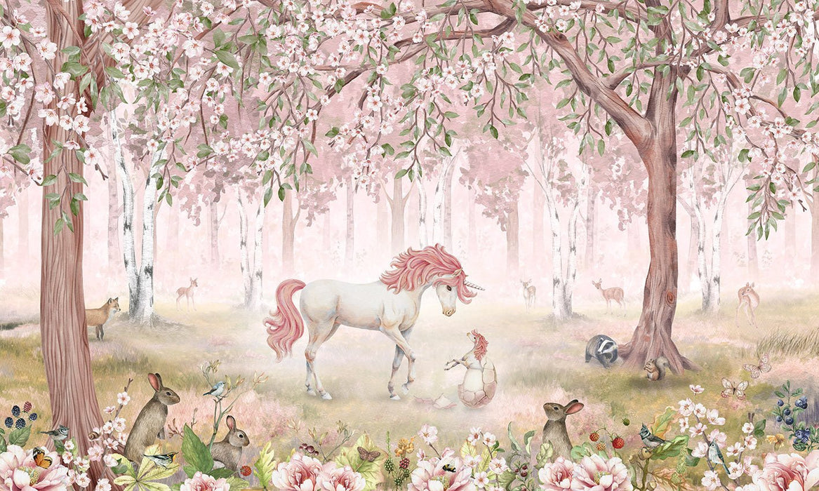 Die rosafarbene märchenhafte Einhorntapete ist die ideale Tapete, um das Zimmer Ihres Kindes geschmackvoll und individuell zu gestalten. Alle kleinen Mädchen lieben Einhörner und Feen. Diese Einhorn-Panorama-Tapete wird auf Maß gefertigt und sorgt für ein atemberaubendes und erhabenes Ergebnis. Ein zauberhaftes Kinder Wandbild für Mädchen, das ein Einhorn auf einer zauberhaften Wiese darstellt: damit können Sie Ihrem Kind schöne Geschichten erzählen. Ihre Tochter oder Ihr kleines Mädchen wird süße Träume haben.