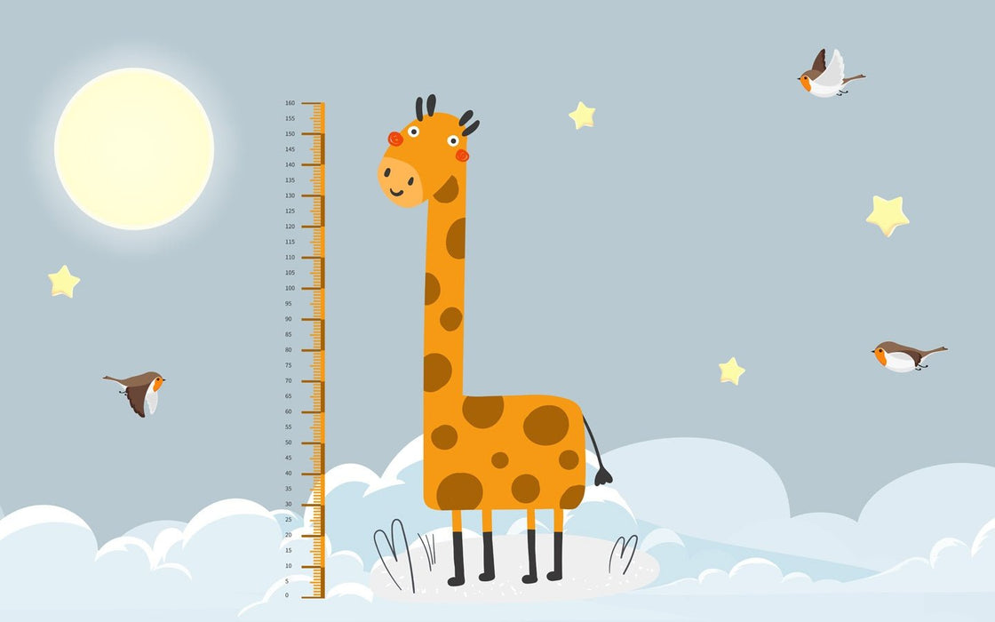 Entdecken Sie unsere weiche Fototapete Motive & Messlatte. Diese Wandtapete für Kinder eignet sich hervorragend für ein Kinderzimmer oder ein Spielzimmer. Eine gemischte Wanddekoration, die Ihr Kind dabei begleitet, wie es Maß nimmt, um das Ziel der Giraffengröße zu erreichen! Eine verspielte Panorama-Tapete, um Ihren Raum zu beleben und Ihr Kind zu erfreuen. Diese maßgefertigte Eco-Friendly-Tapete wurde speziell für das Kinderzimmer entworfen.