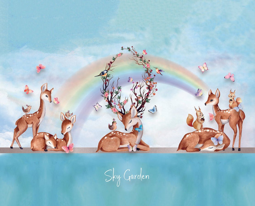 Tapete Kinderzimmer süße Rehe Regenbogen
