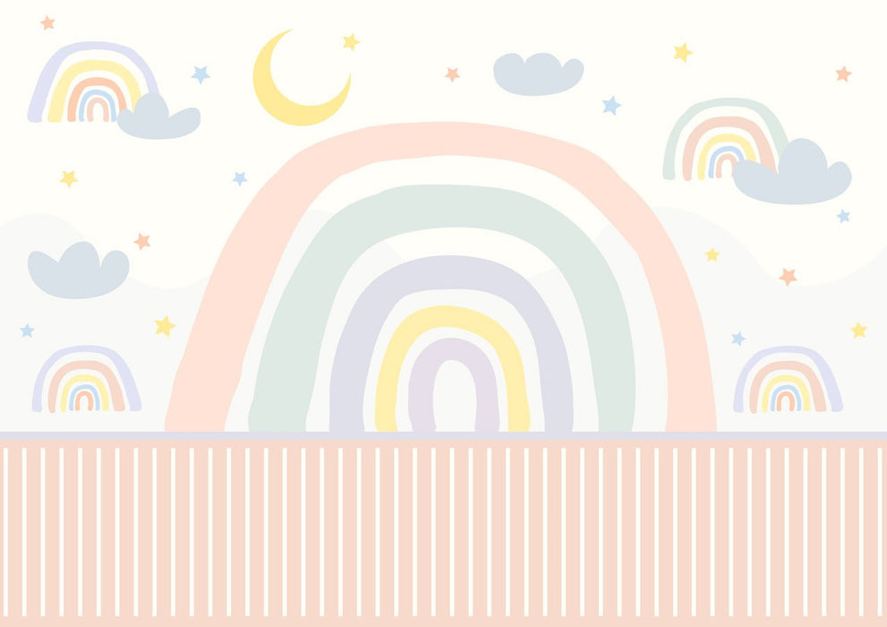 Bringen Sie mit dieser pastellfarbenen Tapete für das Mädchenzimmer Regenbogen Zärtlichkeit und Sanftheit in das Zimmer Ihres Kindes. Ein schöner Regenbogen, der jeden Tag Ihres Kindes erhellt. Ein zauberhaftes Zimmer in Farbe, der sichere Traum kleiner Prinzessinnen. Schaffen Sie ganz einfach die Fantasiewelt, von der Ihr Kind schon immer geträumt hat, mit unserem maßgefertigten XXL-Wandteppich.