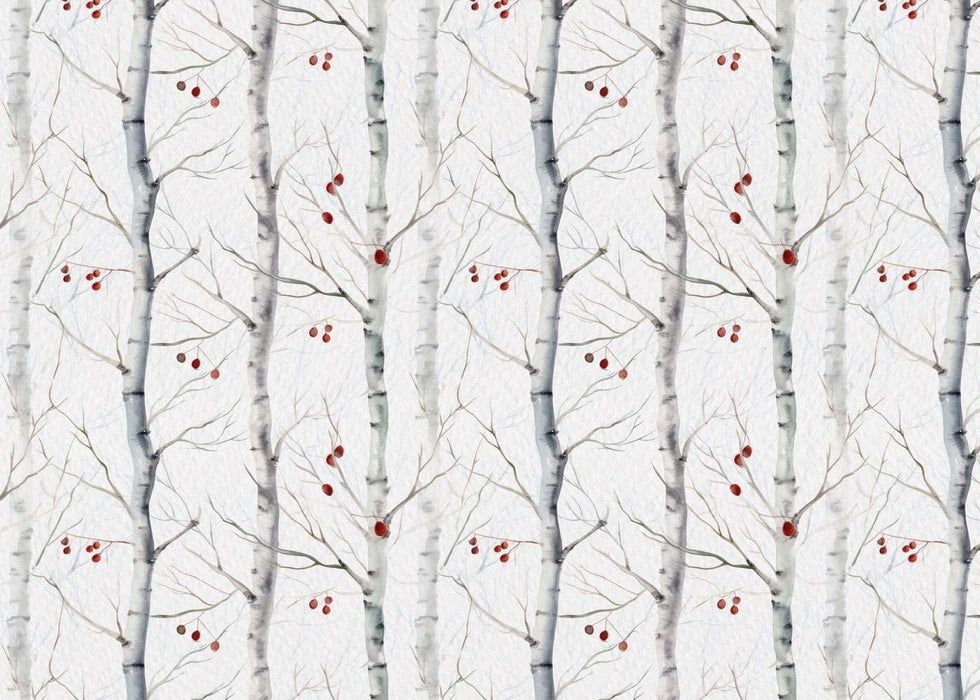 Diese birkenfarbige Tapete verwandelt Ihr Zuhause mit nur einem Blick. Der gemalte Stil verleiht dieser Panorama-Tapete eine sanfte und zarte Note. Der Hintergrund mit Textureffekt verleiht Ihrer Wand Volumen und bleibt dabei diskret und raffiniert. Wir lieben den Kontrast des gesamten Tapetenmusters, das von den roten Früchten der Birke begleitet wird. Dieser Kontrast sorgt für einen Hauch von Originalität.