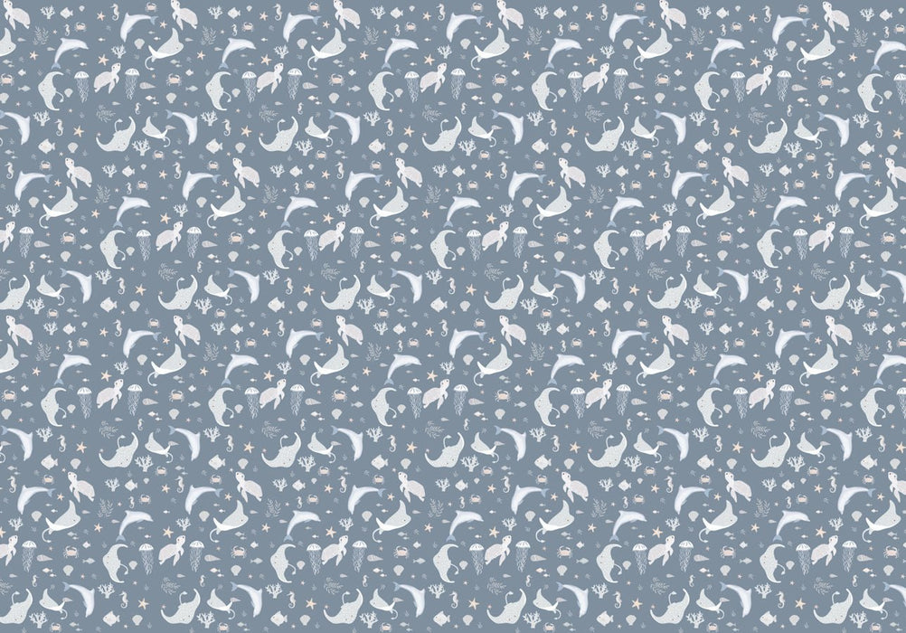 Gestalten Sie das Zimmer Ihres Babys mit der Tapete mit Ozeania-Motiv in knackigem Blau und zarten Pastellfarben. Eine Tapete nach Maß für Ihr Baby, gesund für sein Zimmer und die Luft in Ihrer Wohnung. Lassen Sie Ihr Kind eine Tapete mit Ozean-Motiven entdecken, mit Delfinen, Seesternen, Korallen und anderen Elementen aus dem Meer.