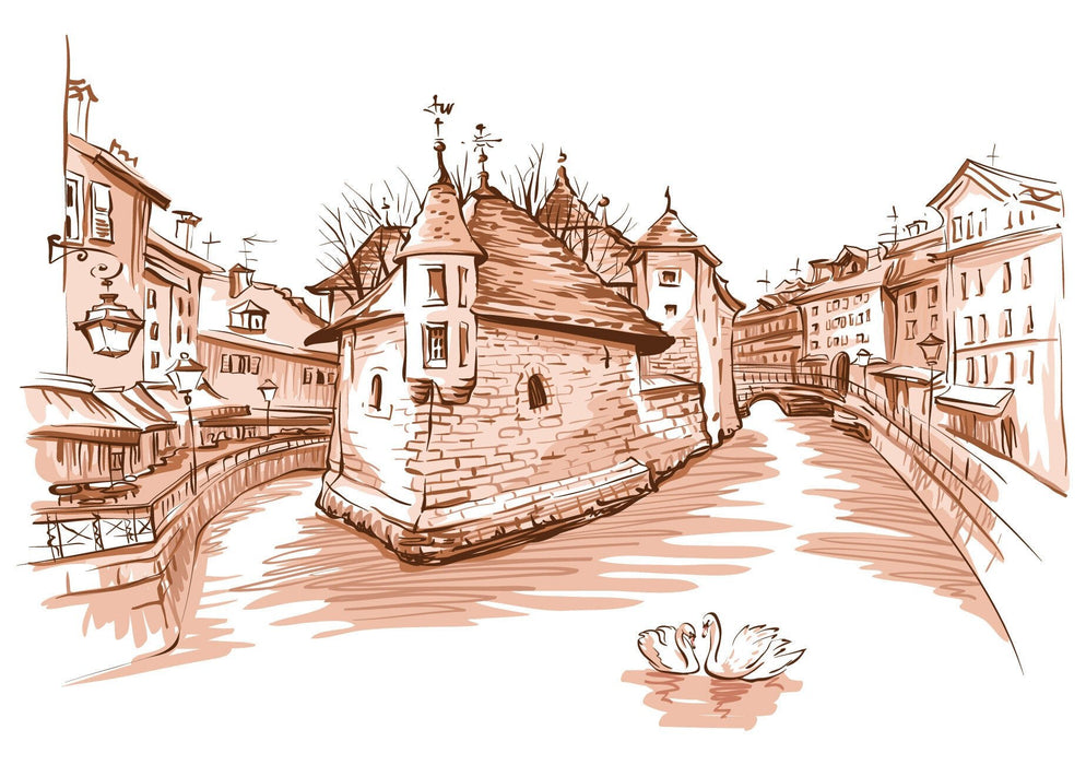 Entdecken Sie unsere Venedig der Alpen Terracotta-Tapete, die der berühmten Stadt Annecy gewidmet ist. Sie ist in Terracotta oder Schwarz-Weiß erhältlich und passt sich somit jedem Interieur an. Unser exklusives Produkt MuralConcept bietet eine unübertroffene Qualität der Illustrationen, die die Gassen der Altstadt von Annecy, ihre Terrassen, den berühmten Palais de l'Isle und die Ufer des Thiou präzise einfangen.