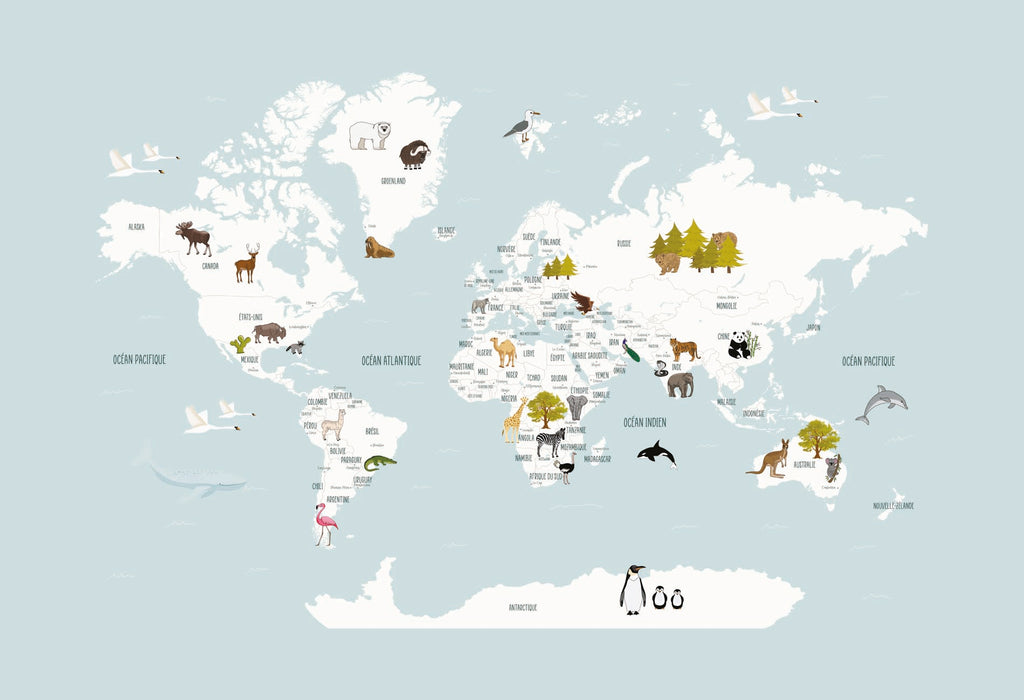 Tapete Weltkarte auf Französisch Kinder Gletscherblau