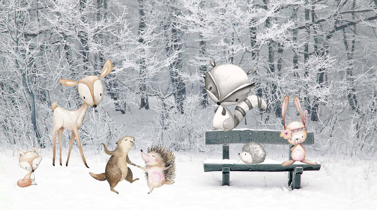 Bringen Sie dank dessen Weichheit und Zärtlichkeit im Zimmer Ihres Kindes ein Winter Dekor Wallpapertiere, mit weichen Farben und tierischen Mustern.  Zarte Muster verführen Ihr Kind im Handumdrehen im Auge. Geeignet für die Räume des kleinen All, garantierter Kokonierungseffekt. Schaffen Sie leicht die imaginäre Welt, von der er immer mit unserer Tapete mit Ihren Messungen geträumt hat.