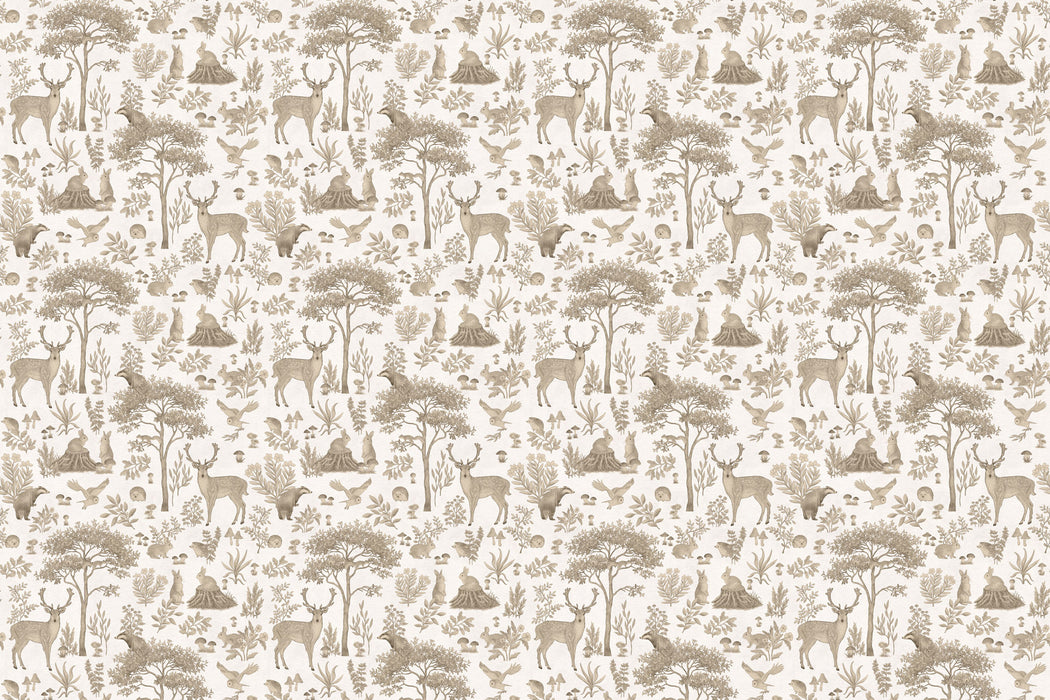 Un paysage forestier délicat se déploie comme une gravure ancienne, invitant à une promenade hors du temps. Cerfs majestueux, lapins discrets, oiseaux en plein vol et petits habitants des bois évoluent parmi les arbres élancés, les feuillages fins et les détails végétaux inspirés de la nature. Chaque scène raconte la vie paisible de la forêt, dans une harmonie douce et silencieuse. Les nuances beige et ivoire créent une atmosphère et chaleureuse, idéale pour envelopper l'espace d'un sentiment de calme lumineux et d'élégance. Cet univers forestier se trouve naturellement à sa place dans une chambre de bébé, une chambre d'enfant ou un intérieur familial en quête de douceur. Inspiré d'un esprit vintage et naturel, ce décor mural invite à l'imaginaire, à la rêverie et à la contemplation, pour une ambiance intemporelle et apaisante. Proposé en papier peint sur mesure, ce décor devient une véritable création murale personnalisée, pensée pour sublimer des intérieurs raffinés. Conçu dans le cadre d’une fabrication et création française, il incarne un décor mural sophistiqué, à la fois intemporel et apaisant.