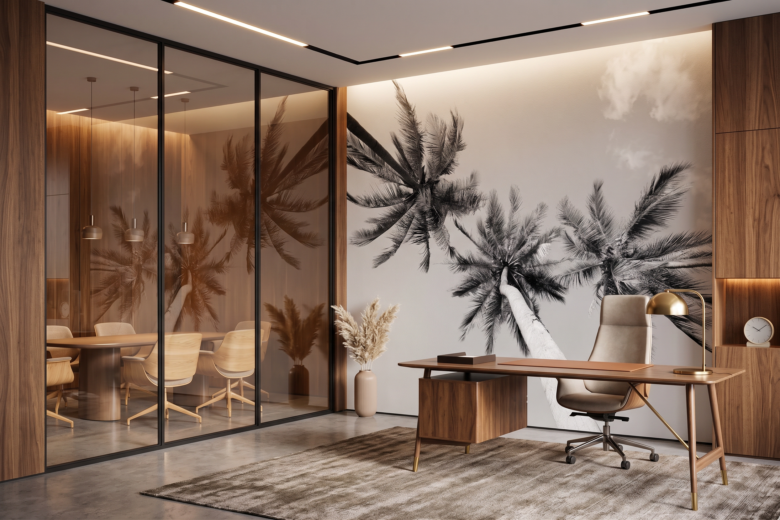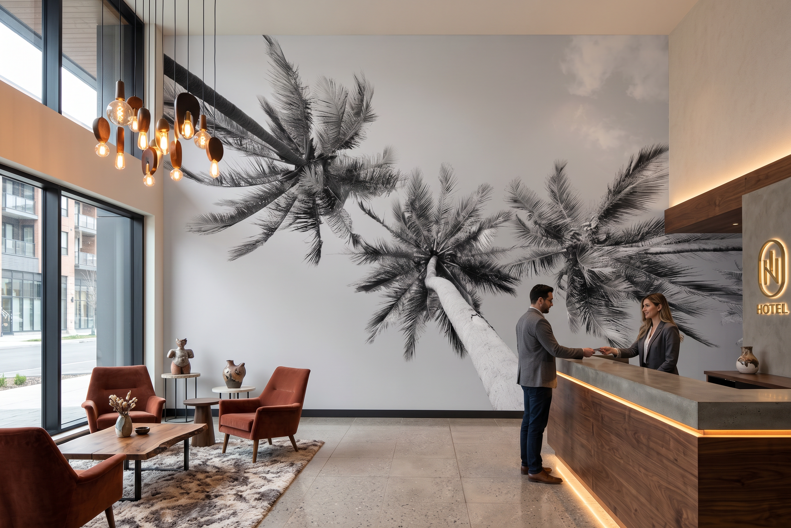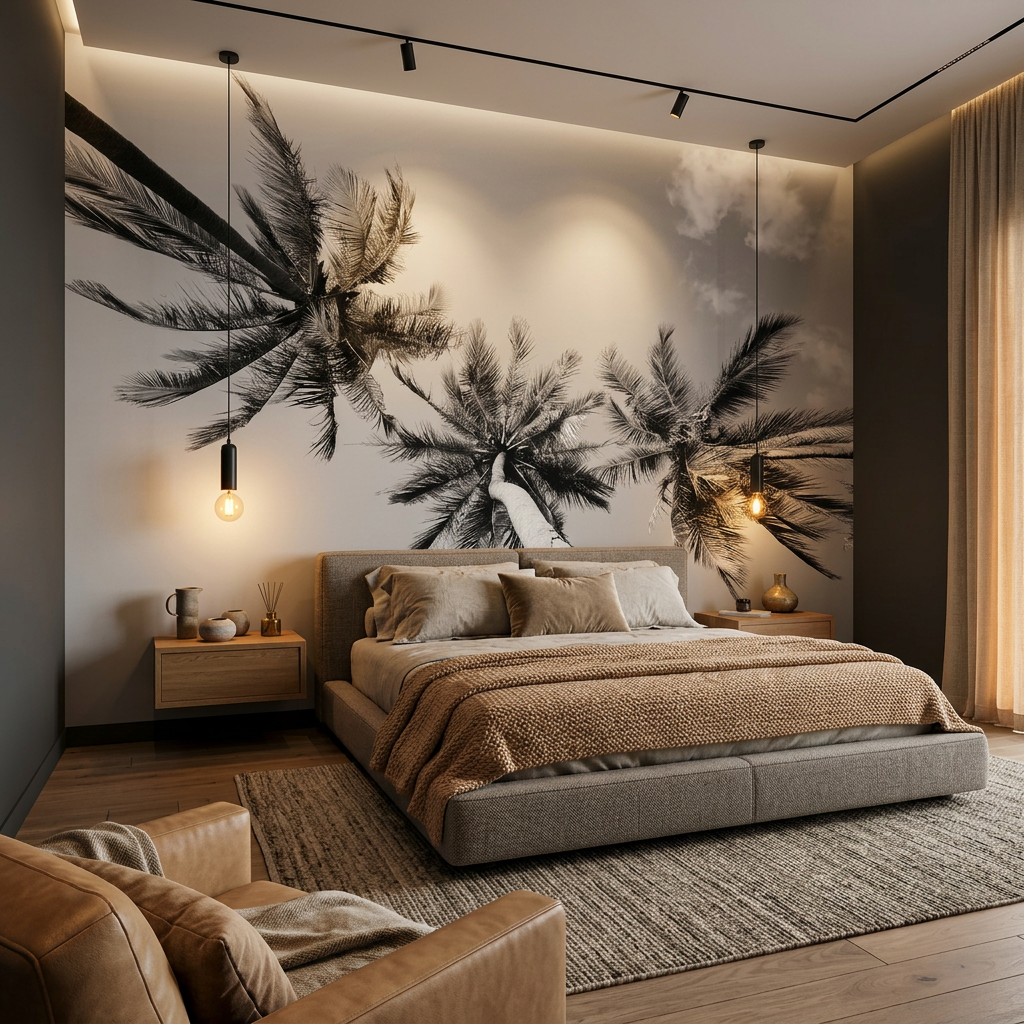 Ce papier peint panoramique tropical met en valeur des palmiers élancés en perspective, créant un effet immersif idéal pour agrandir visuellement l’espace. Son rendu en noir et blanc s’intègre parfaitement dans une décoration moderne, naturelle, minimaliste ou design.