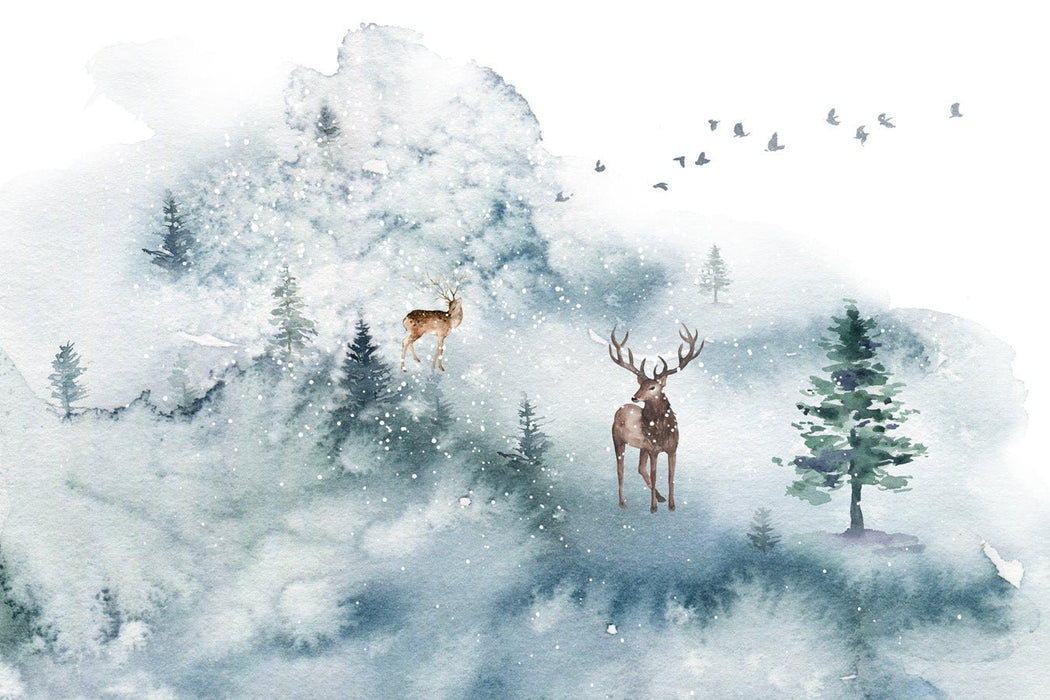 Das Cerf & skandinavisches Hintergrundbild Mit klaren Linien und frischen Farben schafft eine Atmosphäre, die für die Entspannung und Fröhlichkeit förderlich ist. Diese Tapete mit Aquarell -Effekt bringt sowohl Helligkeit als auch eine elegante Note in Ihrem Innenraum. Möchten Sie ein Dekor mit skandinavischen Looks?  Mach es, das ist diese Wanddekoration, die du brauchst!