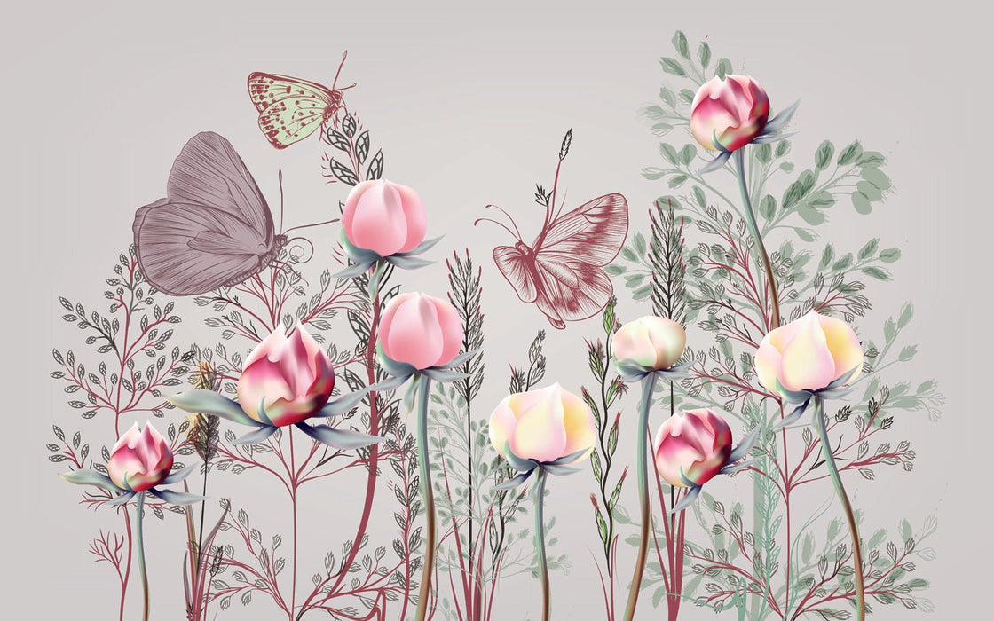 Diese pastellfarbene Panorama-Tapete mit Blumen und Tulpen bringt Zärtlichkeit in Ihr Zuhause! Wenn Sie einen eleganten und gepflegten Stil schaffen möchten, ist dieses Wandbild ideal. Ob in einem Wohnzimmer, einem Schlafzimmer oder einem Büro, dieser Wandteppich bringt sowohl Helligkeit als auch Fröhlichkeit und einen raffinierten Touch in Ihr Zuhause. Gestalten Sie ganz einfach ein traumhaftes Interieur mit unserer maßgefertigten Panorama-Tapete. Kaufen Sie online eine maßgefertigte Panorama-Tapete und Französisch