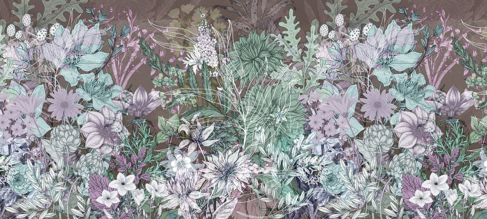 Panorama-Tapete Pflanzen und Blumen in Parmesan