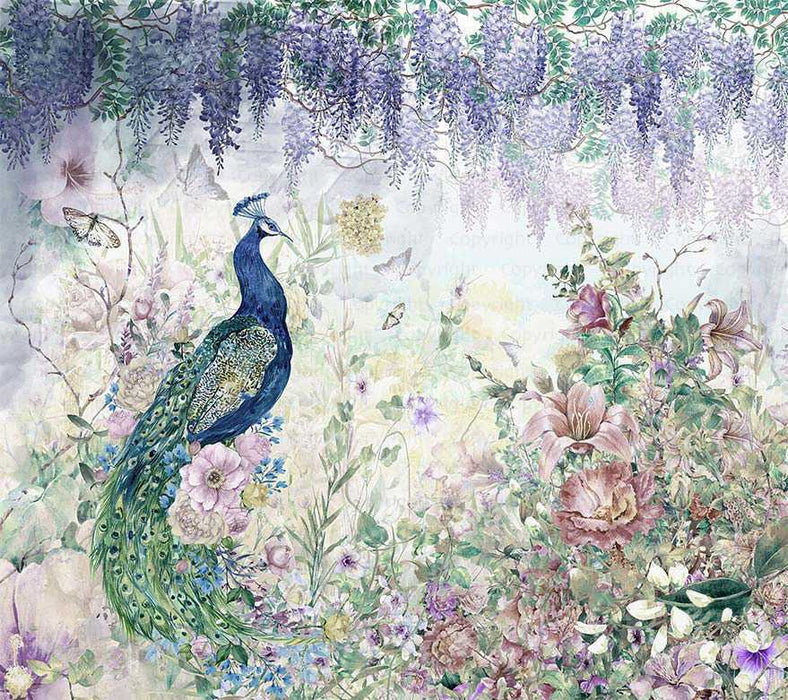 Panorama-Wallpaper Peacock blau Pfau floral