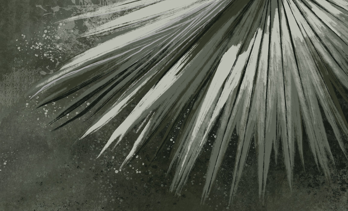 Erliegen Sie dem Charme unserer Retro-Panorama-Tapete in Palmgrün. Eine erhabene und elegante Wanddekoration! Diese Retro-Panorama-Tapete mit Pflanzenmotiven verleiht Ihrer Wand und Ihrem Wohnambiente einen besonderen Charme. Die großen illustrierten Palmenblätter vergrößern optisch den Raum Ihres Zimmers im Handumdrehen. Diese maßgefertigte Tapete verfügt über mehrere grafische Details, die den visuellen Raum bereichern. Suchen Sie nicht länger, Ihre neue grüne Panorama-Tapete ist endlich da!
