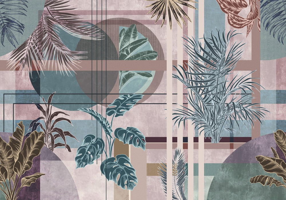 Die Tapete geometric palms rose ist eine zeitgemäße und moderne Panorama-Tapete. Diese XXL-Tapete passt perfekt in jedes Interieur, um die Dekoration auf zarte und subtile Weise aufzufrischen. Diese geometrische Tapete hebt ihre Formen und Farben hervor und ist mit Pflanzen und Blättern bewachsen, um Ihrer Inneneinrichtung einen grünen Touch zu verleihen! Tapezieren Sie diese maßgefertigte moderne Tapete, um Ihre Dekoration zu vervollständigen.