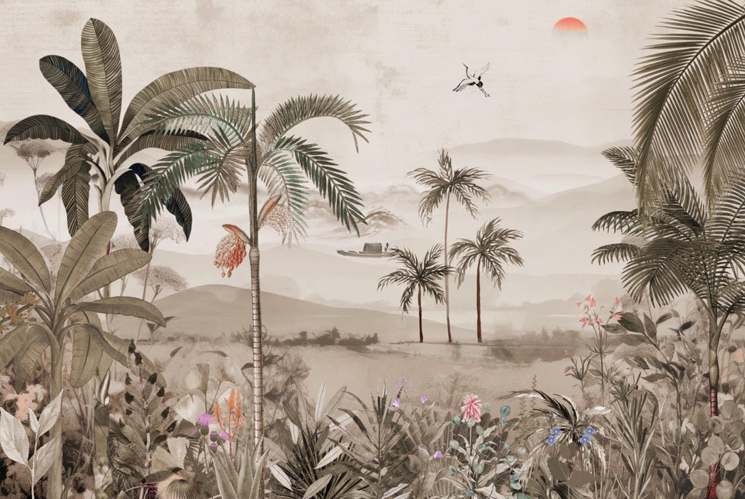 Ideal für alle, die eine Dschungeltapete mit liebevollen Details suchen. Dieses Stück vereint das Talent von Künstlern mit hochwertigen Materialien und bietet eine Optik, die einem Wandgemälde ähnelt. Die satten Farbtöne und raffinierten Muster verleihen Ihrem Zuhause Tiefe und Charakter, egal ob es sich um ein Wohnzimmer, ein Schlafzimmer oder einen Arbeitsbereich handelt.