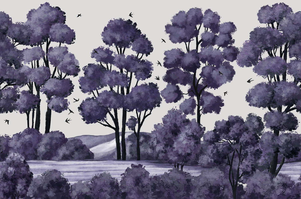 Verschönern Sie Ihr Zuhause mit der Fototapete Landschaft Fluss Wald violett. Dieses pflanzliche Wandbild ist ideal, um Ihrem Raum Tiefe zu verleihen und seine Dimension zu verändern. Ein Wandkunstwerk, das aus einem Künstlergemälde resultiert und ebenso fesselnd wie verträumt ist. Dieses Wanddesign im Aquarellstil stellt eine hübsche Lichtung mit Bäumen und Vögeln dar. Lassen Sie Ihre Wände träumen, indem Sie bei sich zu Hause eine Panorama-Tapete anbringen, die einem Meisterwerk würdig ist! Diese maßgefertigte Tapete ist in verschiedenen Farben erhältlich, sodass sie sich an jedes Ambiente anpassen lässt.