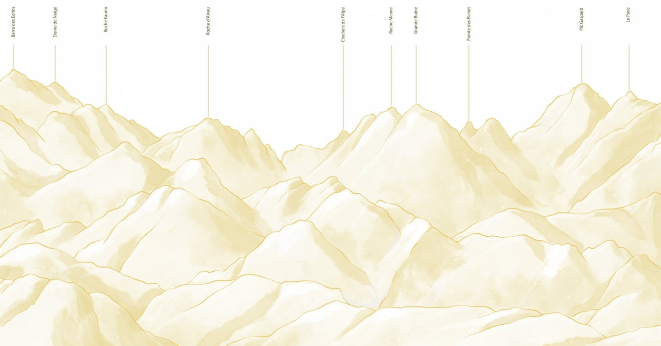 Diese gelbe Panorama-Tapete Massif des Écrins verwandelt Ihre Wanddekoration. Dank dieser einzigartigen Wanddekoration und ihrer originellen Farbe wird sich die Atmosphäre Ihres Raumes verändern und Sie werden optisch an Höhe gewinnen. Wären Sie der nächste Bergsteiger, der diese Gipfel erklimmt und durchwandert?