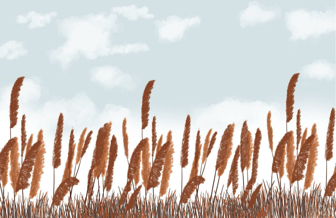 Um einen frischen, bukolischen Stil zu schaffen, ist diese Tapete Pampa Herbst perfekt. Terracotta-Nuancen wärmen Ihr Zuhause, Blau steht für das kommende schöne Wetter. Ob im Wohnzimmer, im Schlafzimmer oder im Büro, diese maßgefertigte Tapete verleiht Ihrer Dekoration Helligkeit, Stil und eine raffinierte Note. Wir lieben die Wolken!