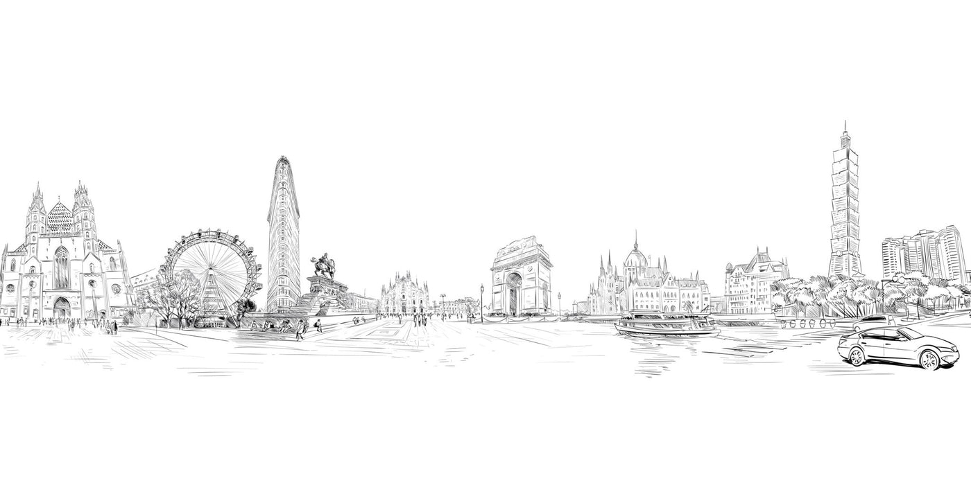Die schwarz-weiße Fototapete Monument der Welt ist ein fesselndes Kunstwerk, das die Essenz der ikonischsten Monumente der Welt in einem einzigartigen gezeichneten Stil einfängt. Die feinen und detaillierten Linien schaffen einen eleganten und anspruchsvollen Kontrast, der sich ideal für zeitgenössische Innenräume eignet. Jedes Monument, sei es der Triumphbogen, das Kolosseum oder der Kanal von Venedig, wird mit künstlerischer Präzision dargestellt, die jedem Raum einen Hauch von Klasse und Kultur verleiht. Diese maßgefertigte Panorama-Tapete passt perfekt zu modernen Möbeln und minimalistischen Dekorationen und verleiht dem Raum eine visuelle Tiefe, ohne ihn zu überladen. Perfekt für ein Wohnzimmer, ein Büro oder ein Schlafzimmer, verwandelt sie Ihre Wand in ein Fenster zur Welt und weckt Träume von Reisen und Abenteuern. Verwandeln Sie Ihr Zuhause stilvoll, indem Sie unser Panorama-Wandbild anbringen.