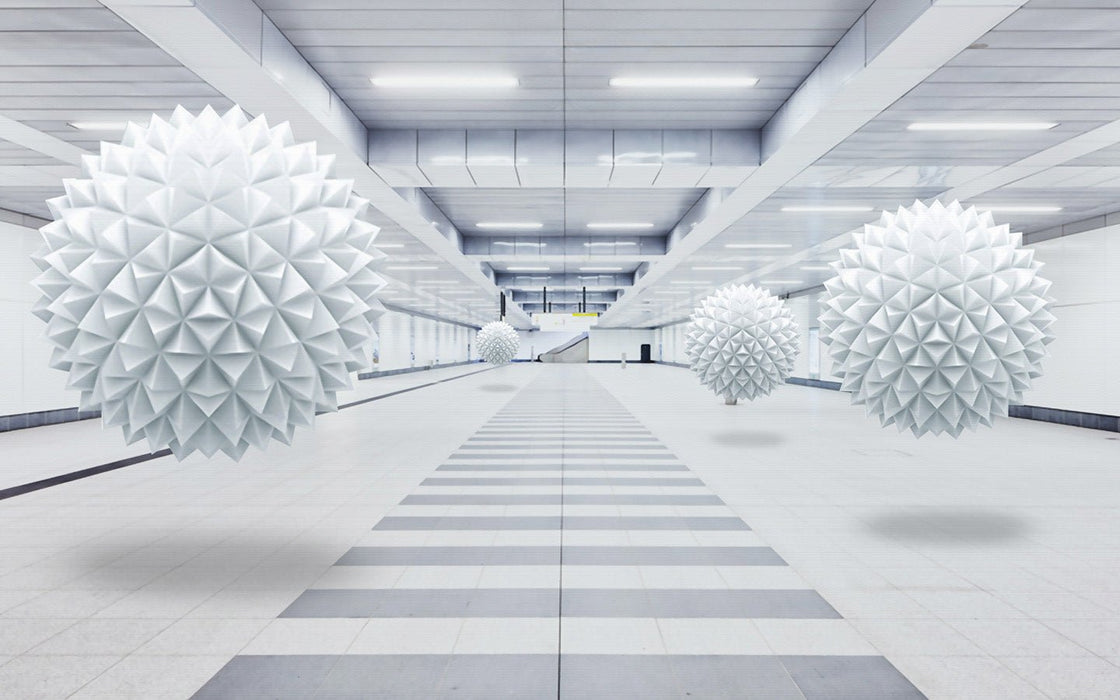 Die 3D-Trompe l'oeil-Tapete Trend in the air schafft eine neue Perspektive in Ihrem Zuhause. Ihre hellen Farbtöne und luftigen Muster bringen Helligkeit und Tiefe in Ihren Raum. Ideal für ein Wohnzimmer, ein Schlafzimmer oder ein Büro. Cie Panorama-Tapete lädt Sie ein, in einen fiktiven 3D-Raum einzutreten, der sehr realistisch wirkt. Eine Wanddekoration wird Ihre Gäste beeindrucken. Erstellen Sie ganz einfach ein einzigartiges Interieur mit unserer Wandtapete, die auf die Maße Ihrer Wand zugeschnitten ist.