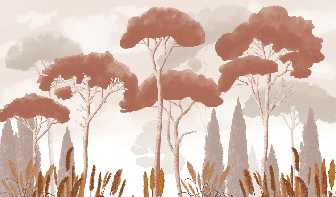 Papier peint cyprès pins et herbes de la pampa terracotta