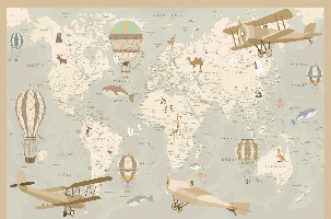 Papier peint enfant carte du monde aviateur
