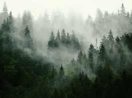 Papier peint forêt brumeuse verte