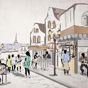 Papier peint français Paris café en terrasse
