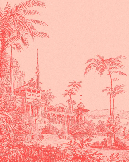 Papier peint jungle temple monochrome rouge