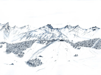 Papier peint montagne Megève – Fresque artistique peinte à la main
