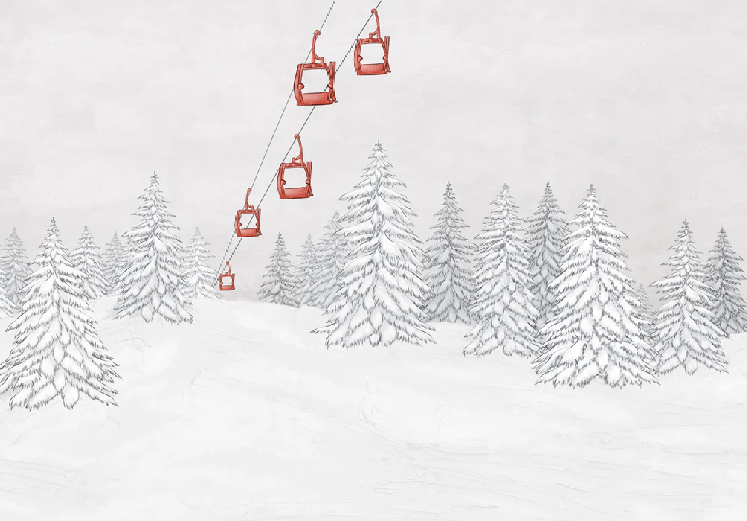 Papier peint montagne télécabine rouge