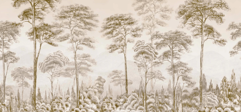 Papier peint nature pinède sépia