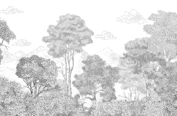 Papier peint panoramique Forêts et Monts Crayonnés
