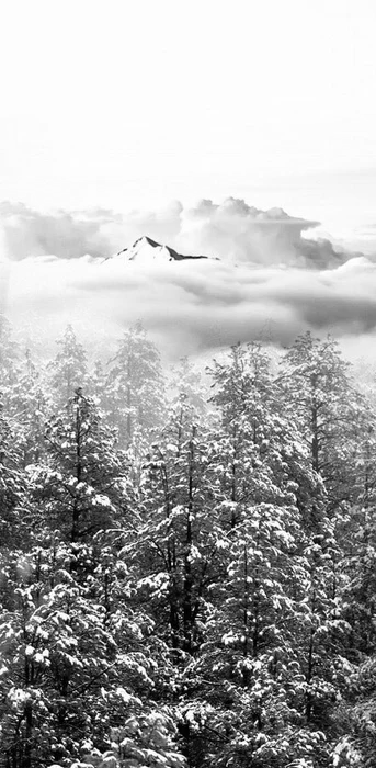 Papier peint panoramique intissé forêt de sapin neige