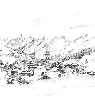 Papier peint panoramique La Clusaz en peinture - Noir et blanc