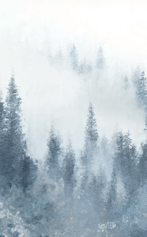 Papier peint sapin brume bleu aquarelle