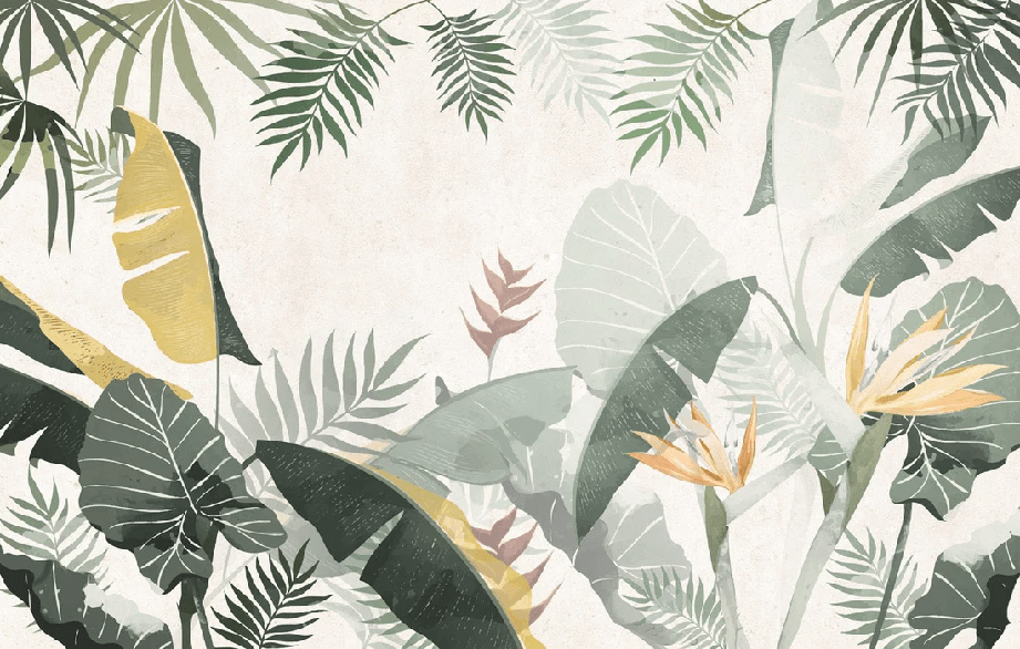 Papier peint sur mesure végétal vert jaune