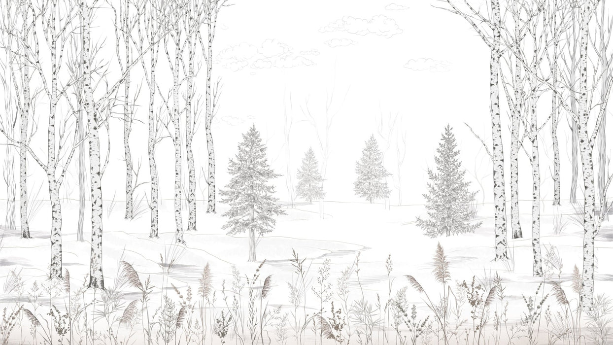 Schwarz-weiße Waldtapete – Douceur des Bois